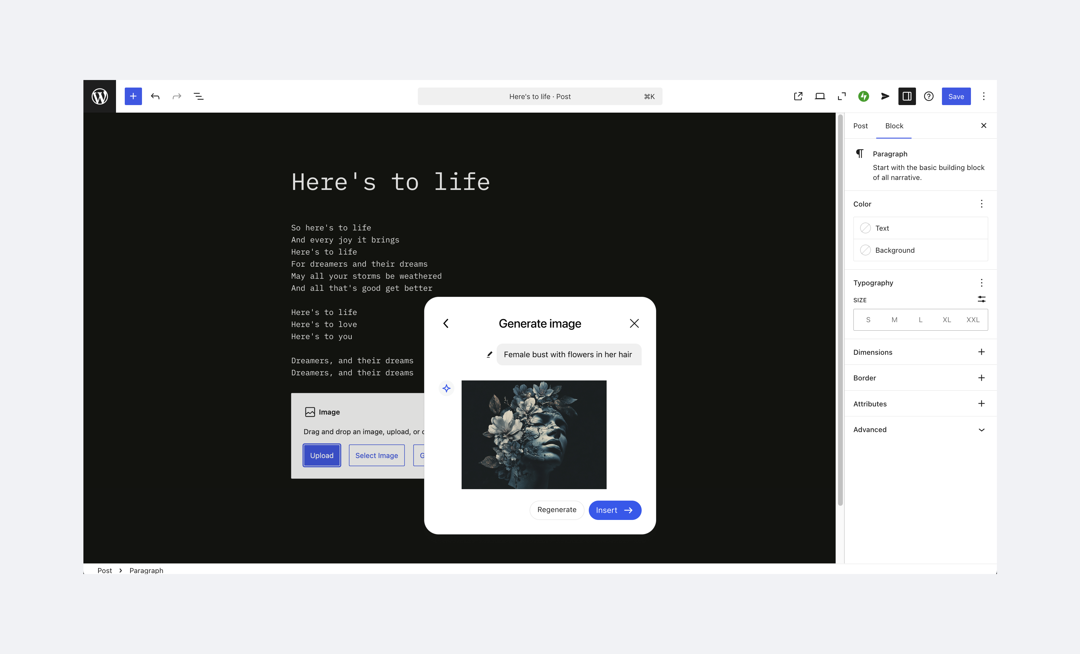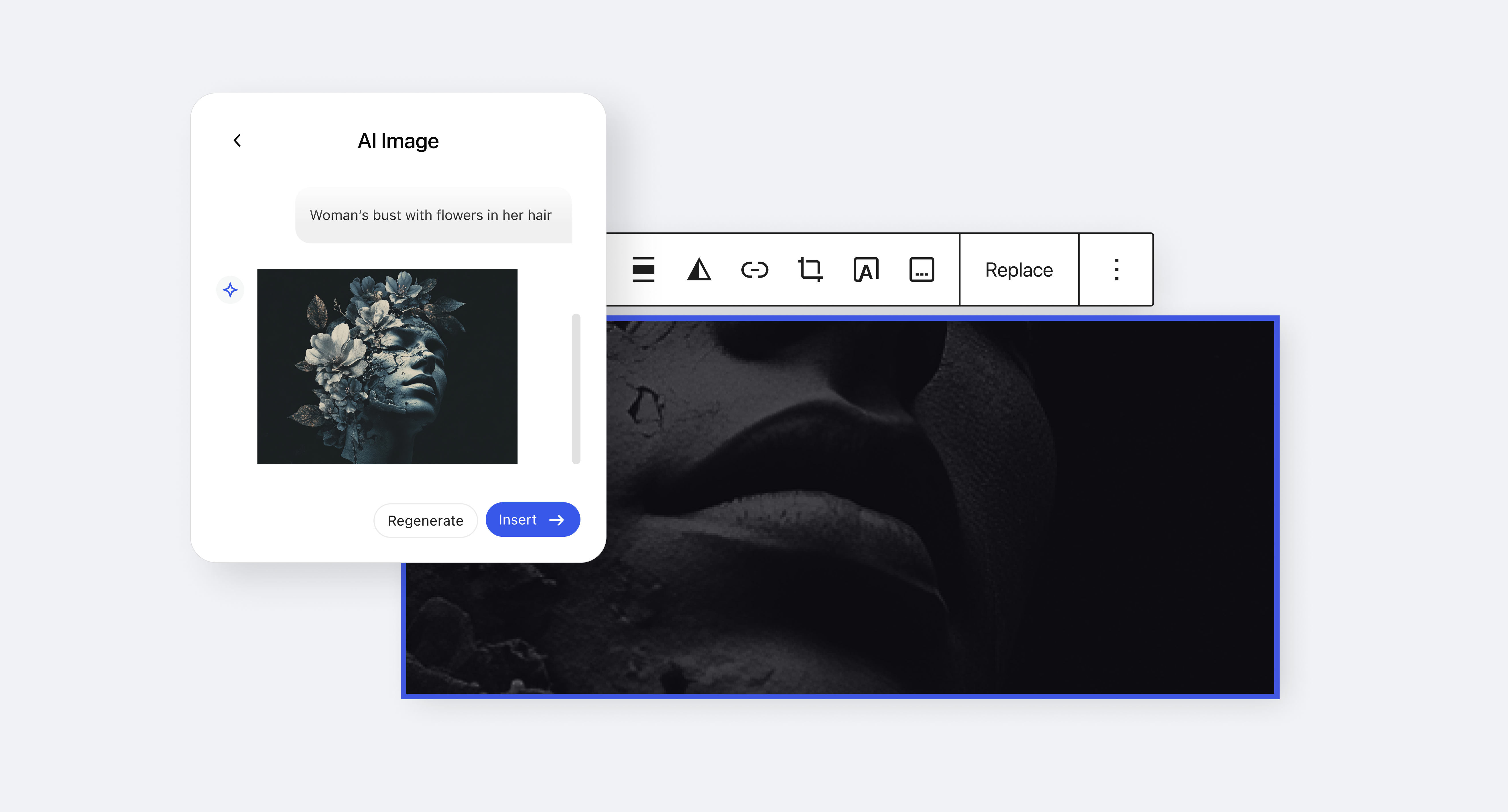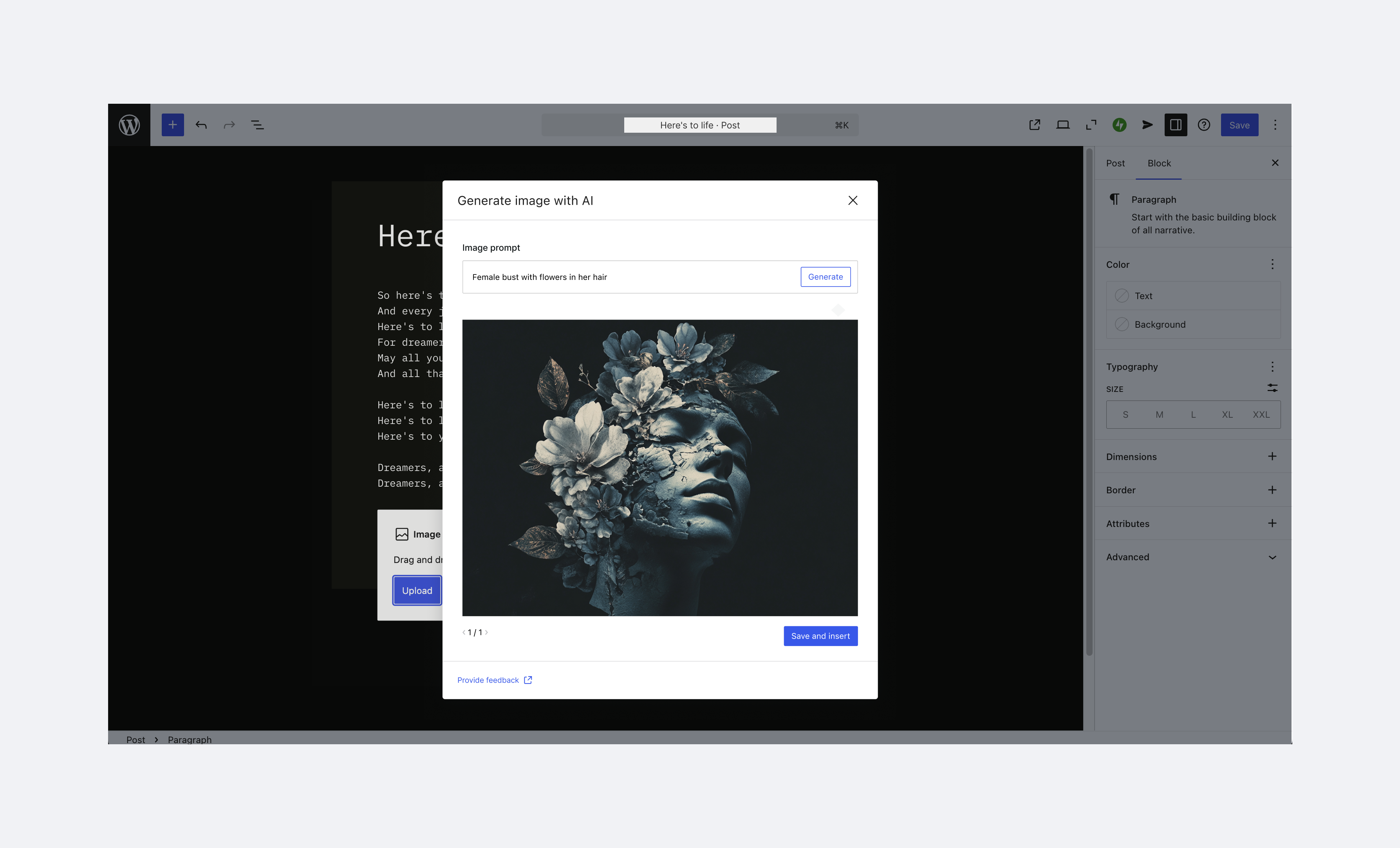 First release of the image generation feature integrated within the Gutenberg Image block. The modal allows for quick image iterations without leaving the post editor.
