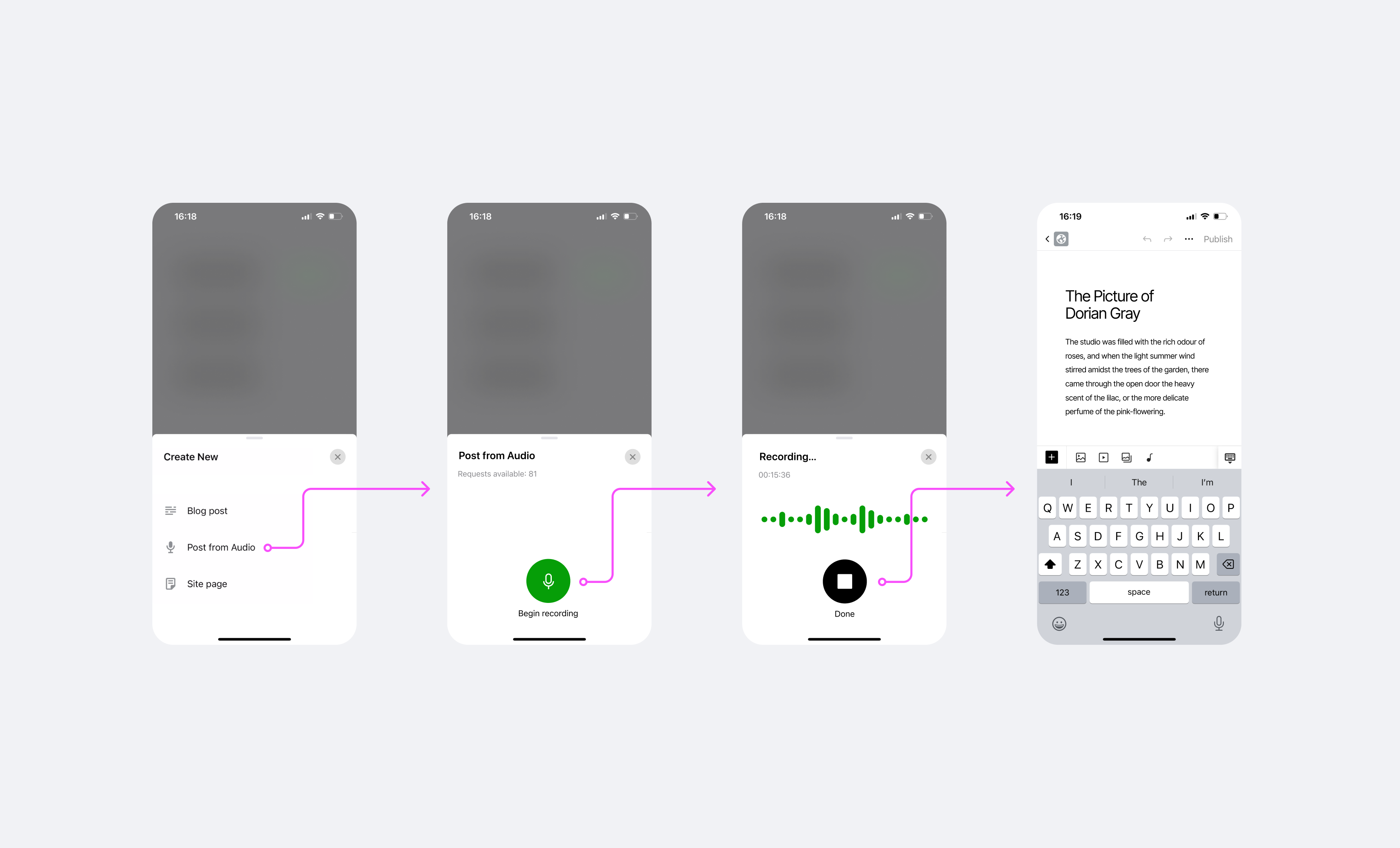 Voice to Post – Jetpack mobile app feature (iOS and Android) that allows users to dictate the content. AI is used to transcribe audio, format the text, and make it publish-ready in the editor.